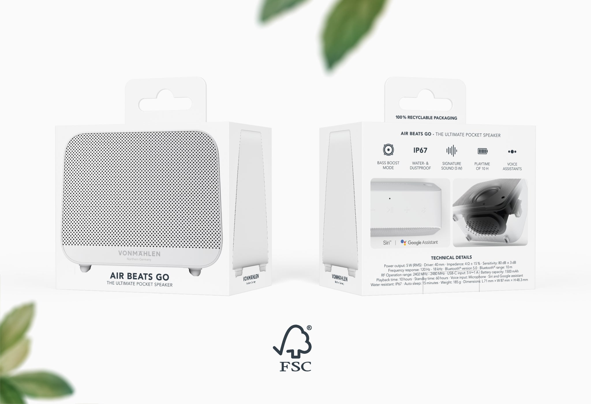 Air Beats Go ist unser kompakter kabelloser Bluetooth® Lautsprecher. Er überzeugt trotz seiner kompakten Größe mit beeindruckendem Klang sowie einer Akkulaufzeit von bis zu 10 Stunden und ist daher der perfekte Musikbegleiter - für zu Hause und unterwegs. Air Beats Go ist dank IP67 vollständig staub- und wasserdicht und kann bis zu 30 Minuten lang in Wasser von bis zu einem Meter Tiefe eintauchen. Er ist kompatibel mit Sprachassistenten (Siri & Google Assistant) und kann auf Knopfdruck per Sprachbefehl gesteuert werden.